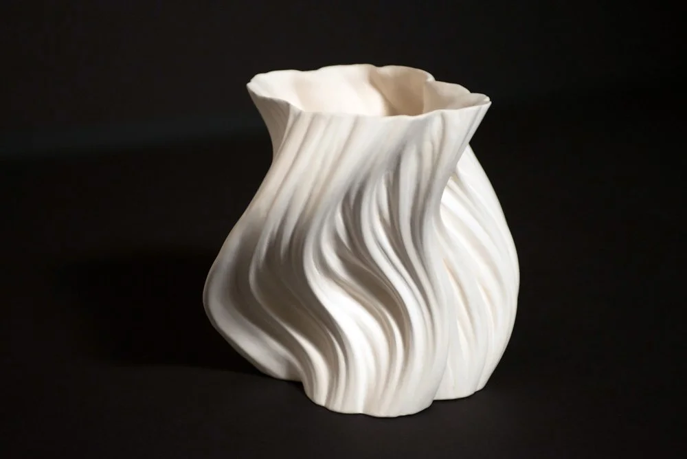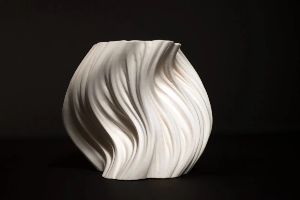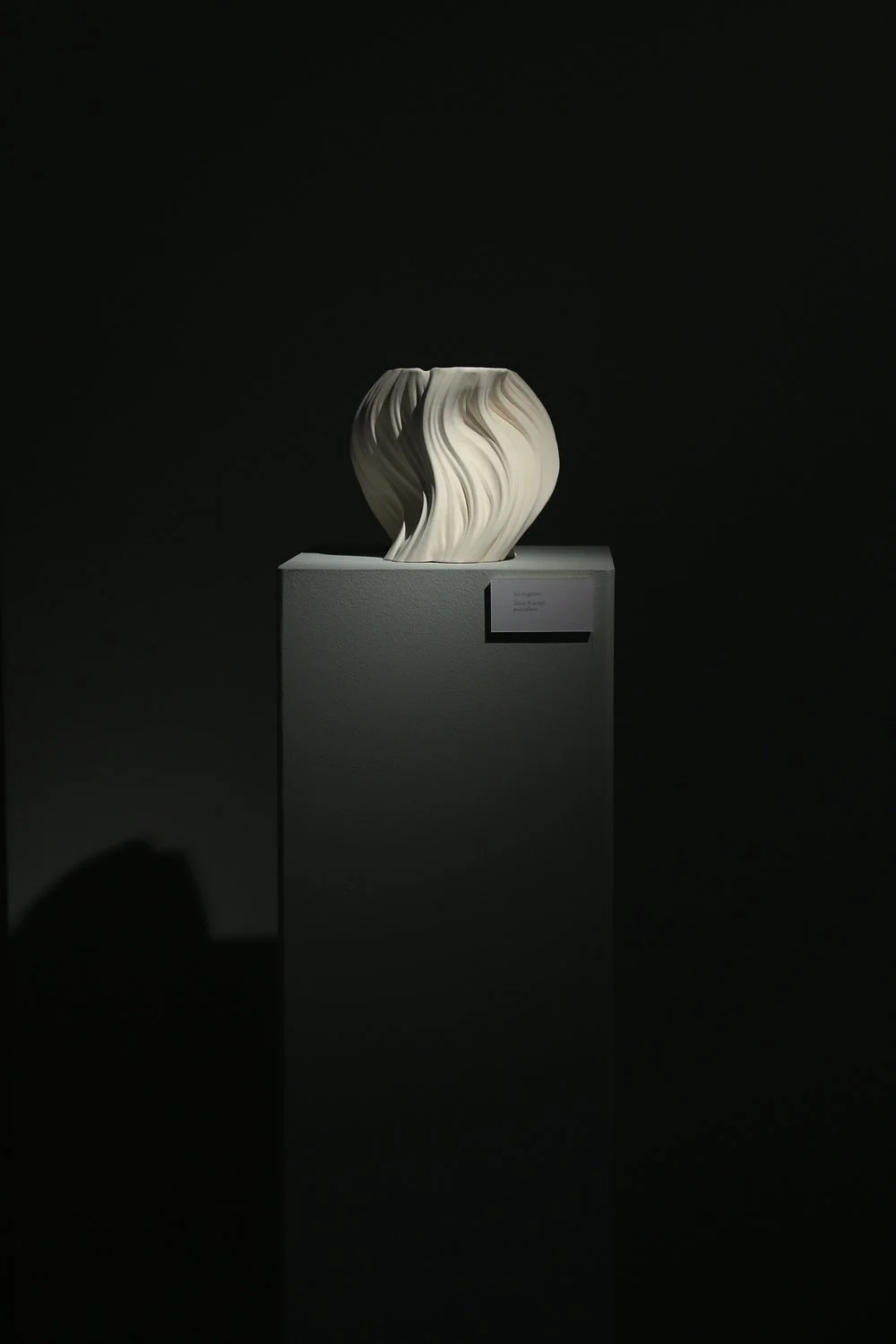 A meditation on the intersection of mathematics and materiality, Quiet Momentum translates a complex fractal equation into a physical form. Using 3D printing technology, Liguori renders the abstract geometry of the Julia set into a sculptural vessel, which is then slip-cast in porcelain. The work collapses the digital and the tactile, grounding an infinitely iterative mathematical principle in the weight and fragility of ceramic.